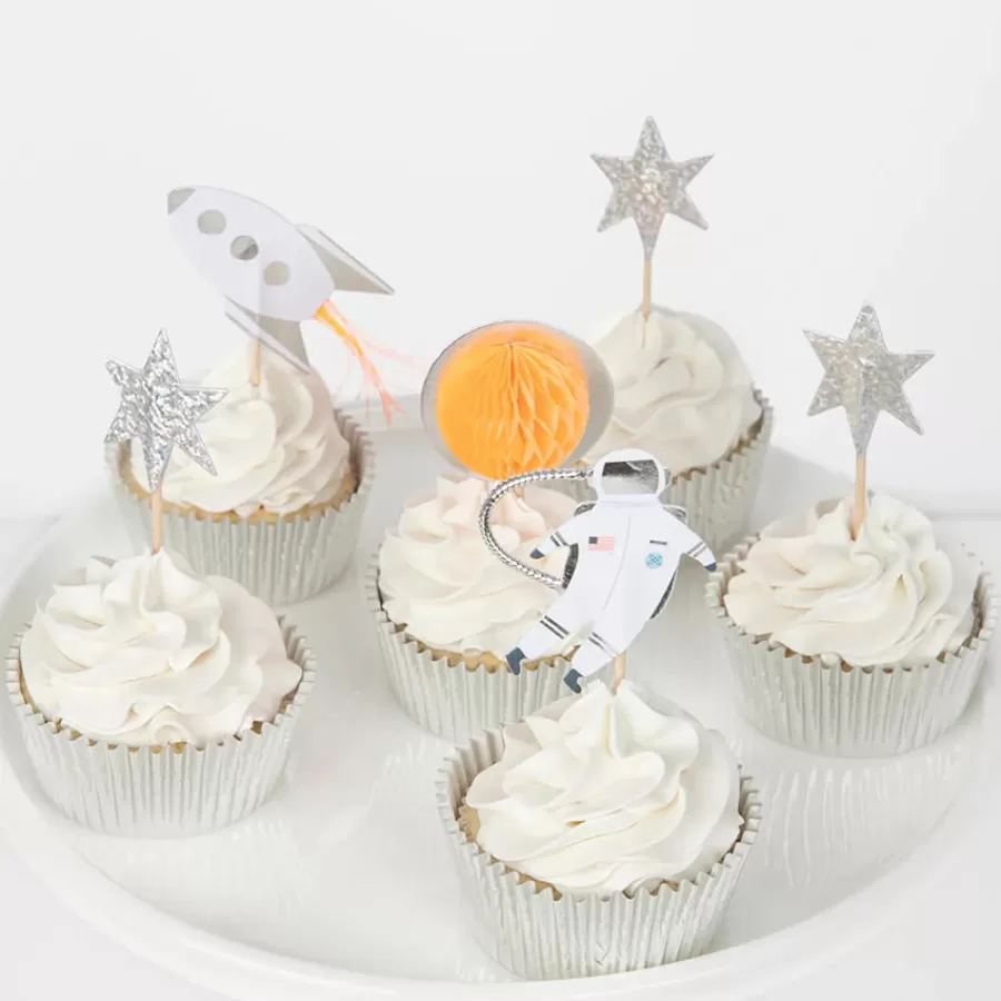 - 24 διακοσμητικά στικ για cupcakes σε 4 σχέδια: αστροναύτης, διαστημικός πύραυλος, αστέρι & Κρόνος (6τμχ. σε κάθε σχέδιο)