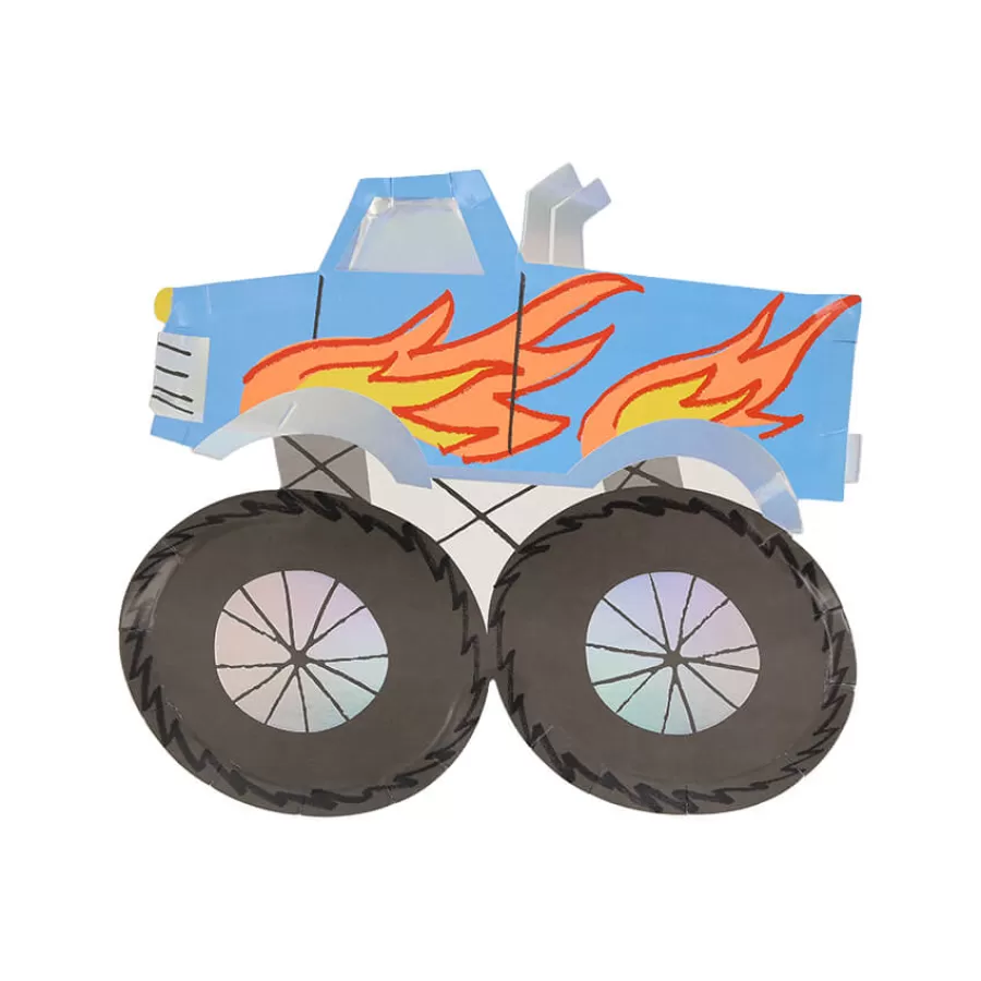 Χάρτινα πιάτα Monster Truck σε 3 χρώματα (σιέλ, κόκκινο & μαύρο) με ολογραφικές λεπτομέρειες.