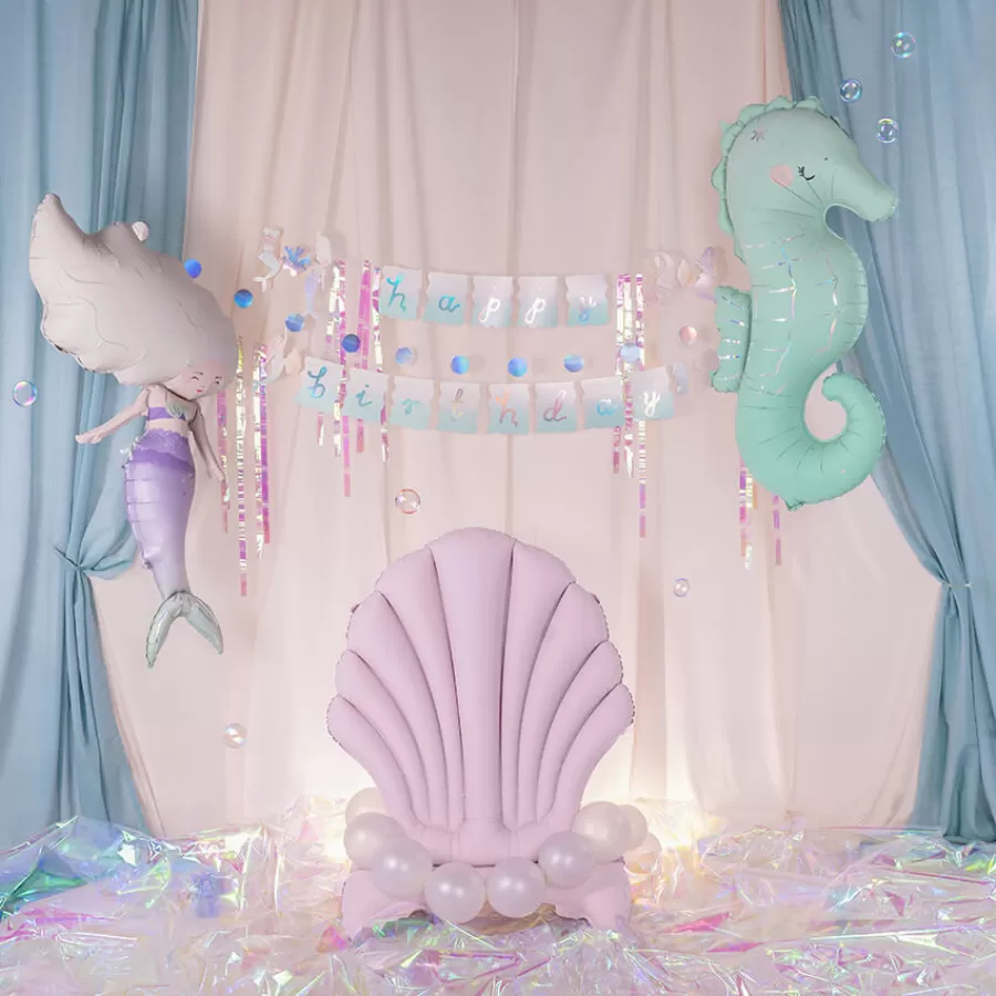 - Μία γιρλάντα με χάρτινα διακοσμητικά (γοργόνες, κοχύλι, κοράλι) και banner που γράφουν "happy"