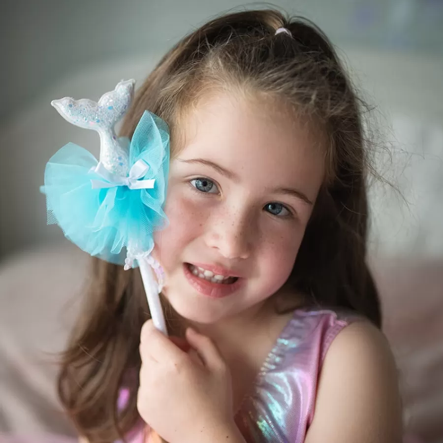 Ραβδάκι λευκό με ουρά γοργόνας λευκή με γκλίτερ & σιέλ τούλι