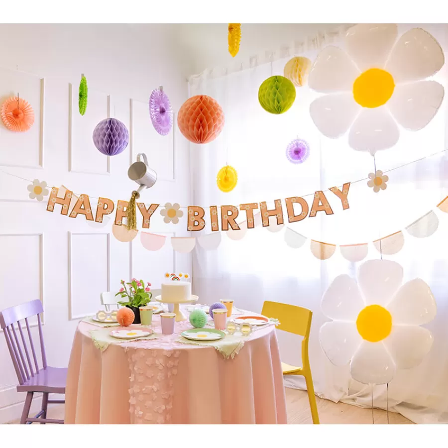 Γιρλάντα "Happy Birthday" σομόν με μαργαρίτες