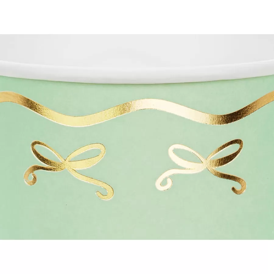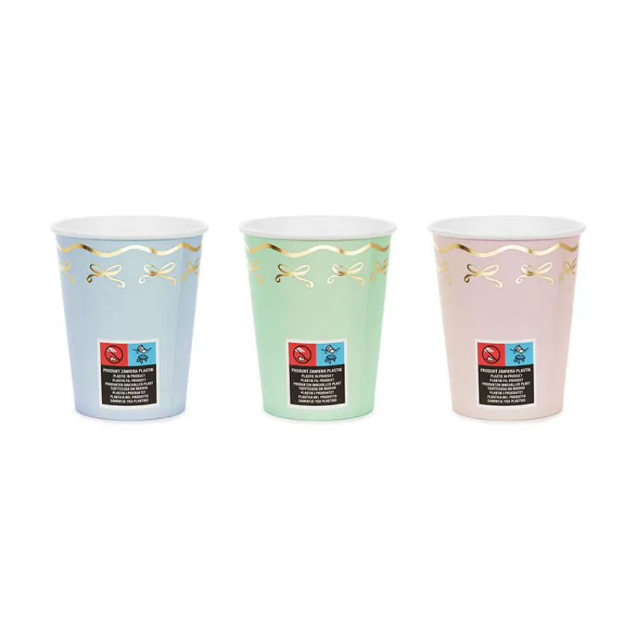 Χάρτινα ποτήρια βεραμάν/ροζ/σιέλ με χρυσά φιογκάκια - 6τμχ.