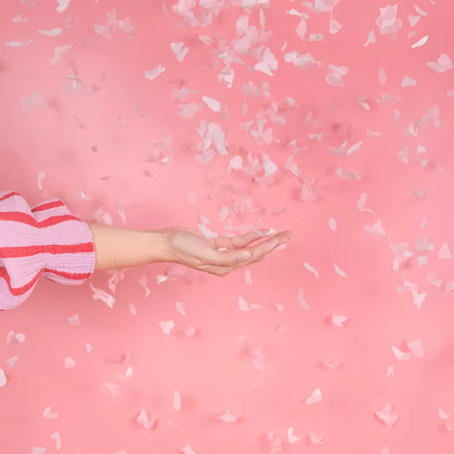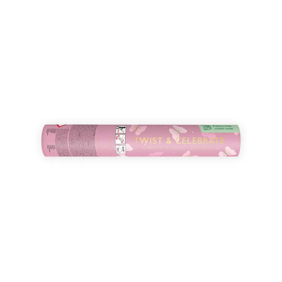 Μίνι κανονάκι με χάρτινο κονφετί πεταλούδες σε δύο αποχρώσεις του ροζ.