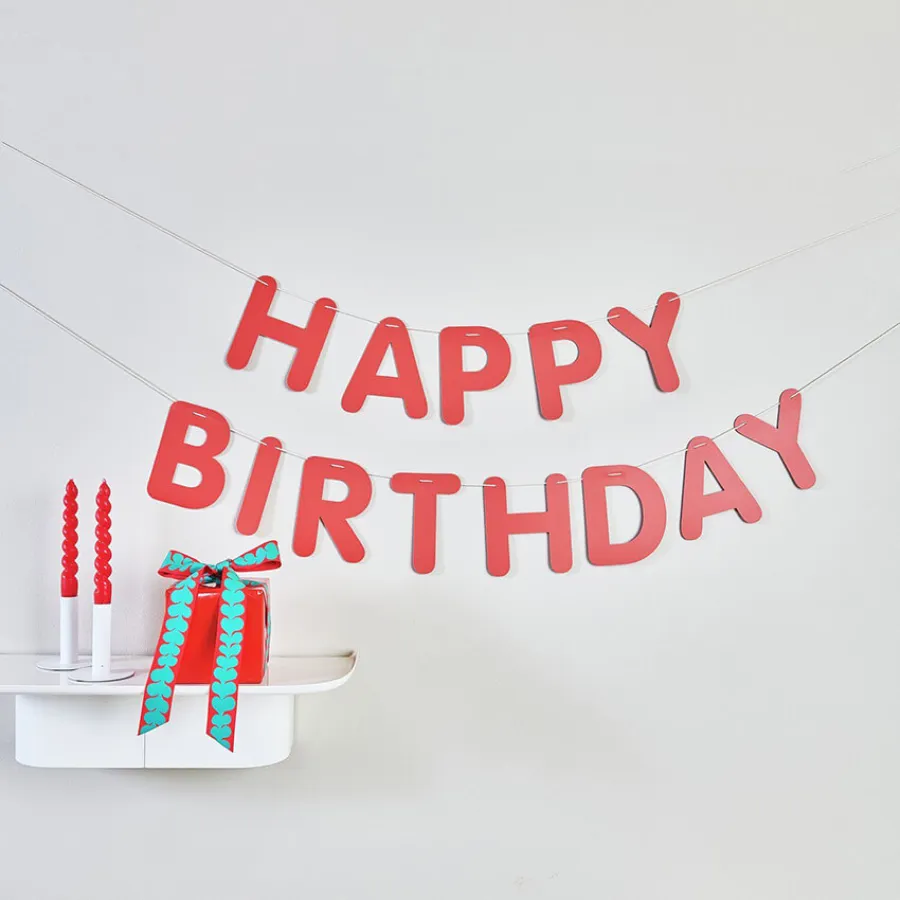 Χάρτινη γιρλάντα "Happy Birthday" με κόκκινα γράμματα.