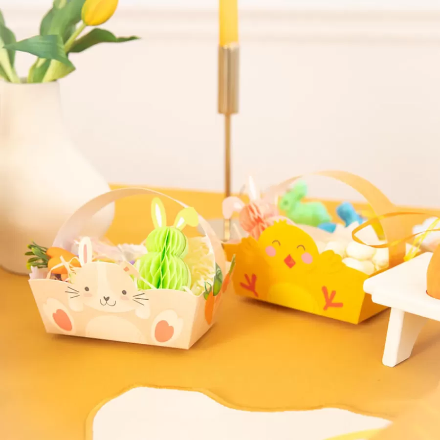 Χάρτινα καλαθάκια σε πασχαλινά σχέδια, με κοτοπουλάκια & κουνελάκια.