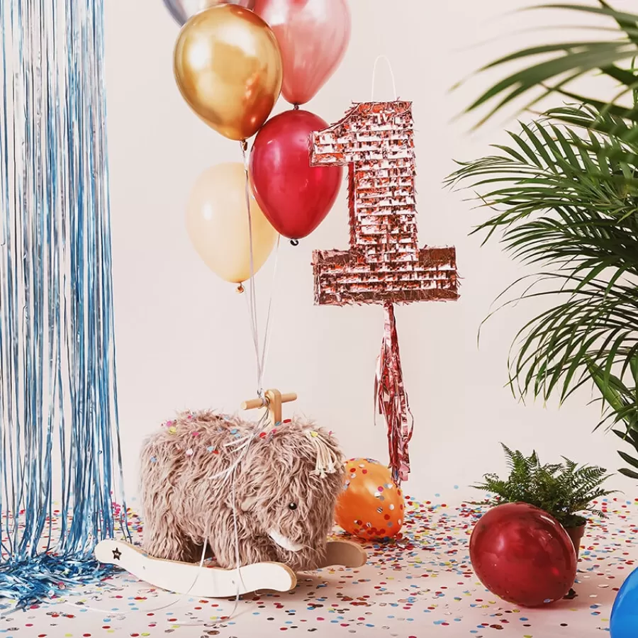 Πινιάτα αριθμός 1 σε ροζ χρυσό χρώμα για τα πρώτα γενέθλια.