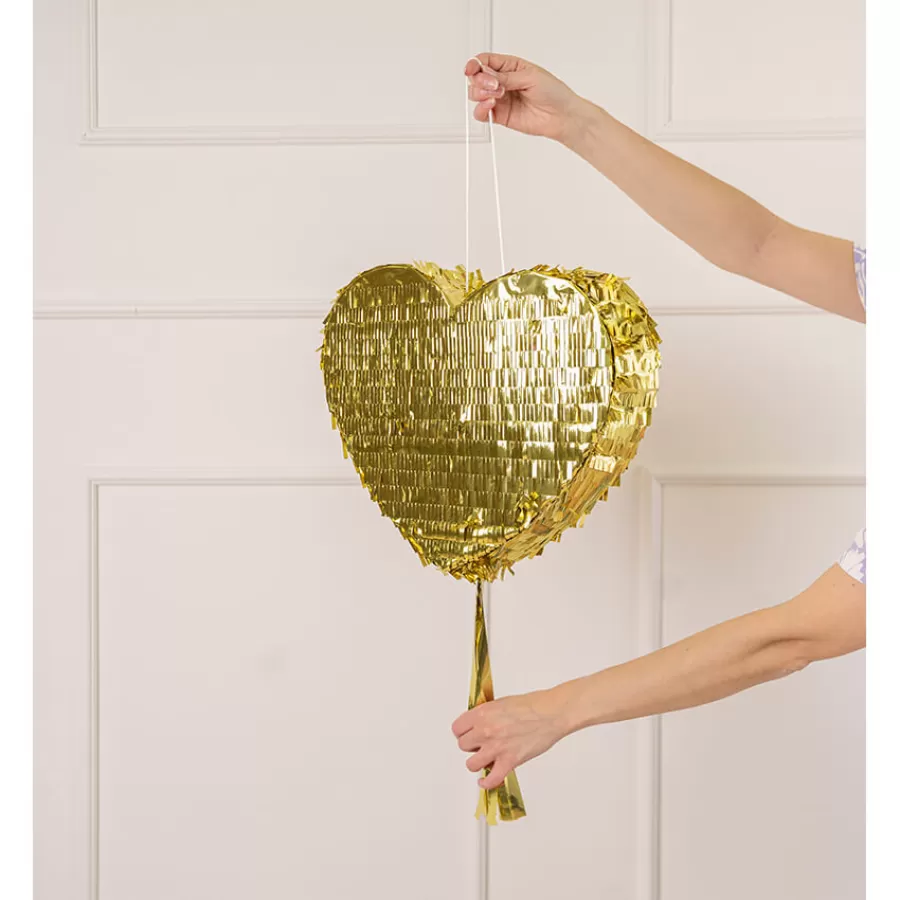 Pull pop-out πινιάτα με σχέδιο την καρδιά σε χρυσό χρώμα.