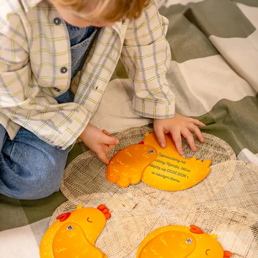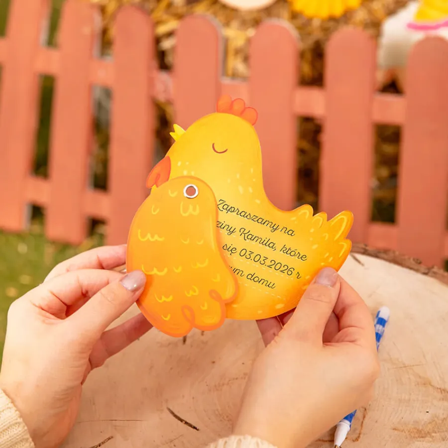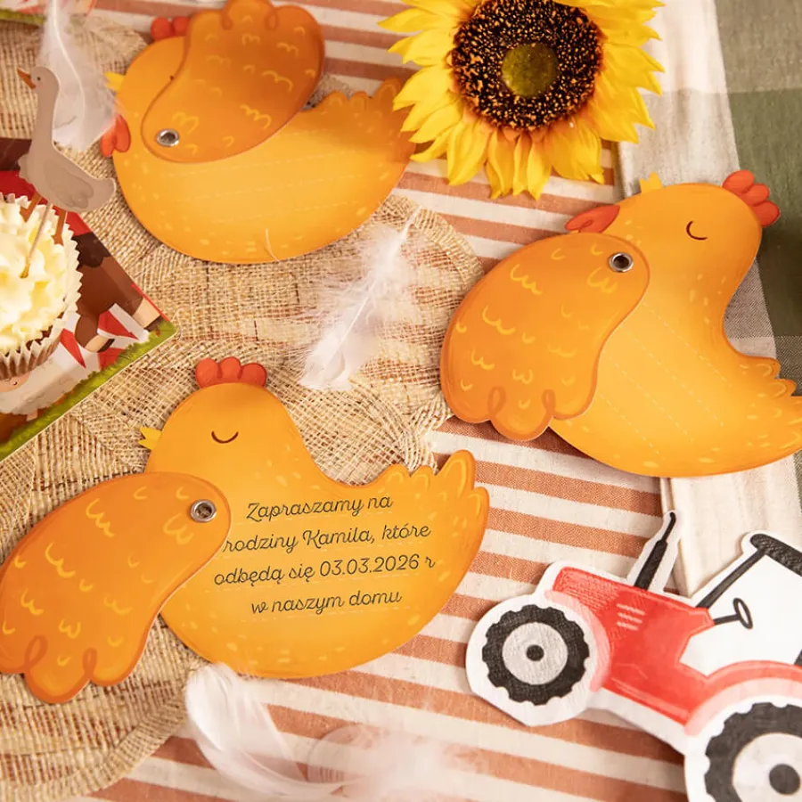 Προσκλήσεις για πάρτυ σε σχέδιο κοτούλας.