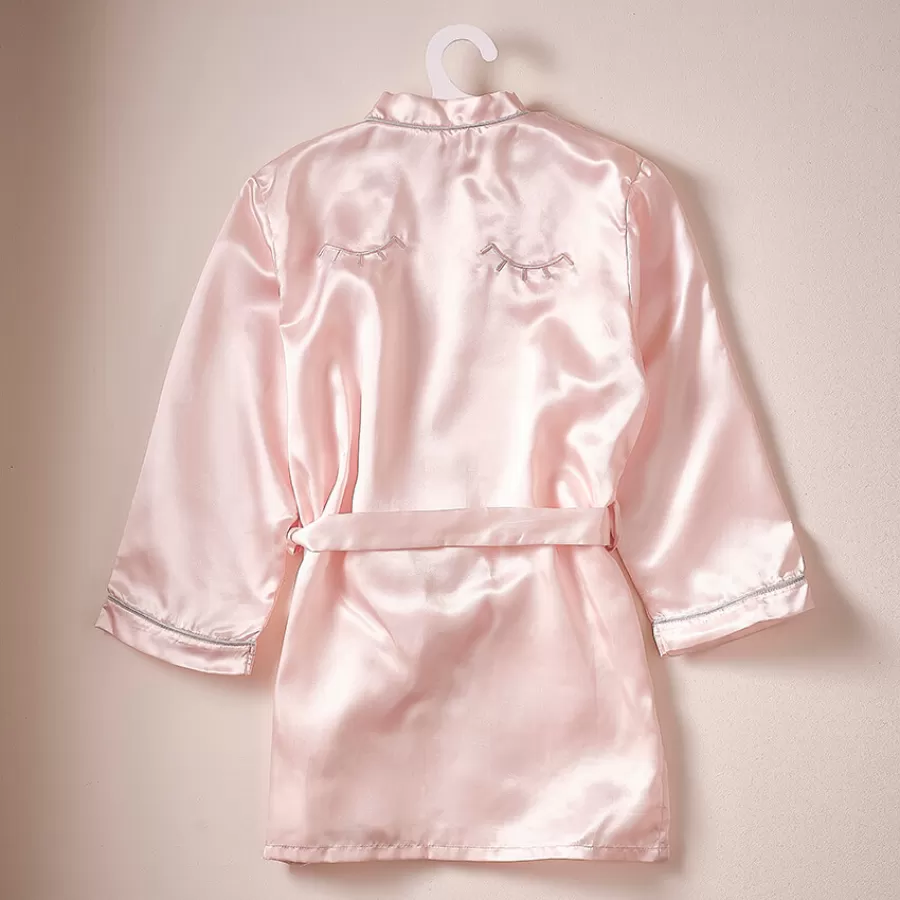 Ροζ σατέν ρόμπα με κεντημένα ματάκια.