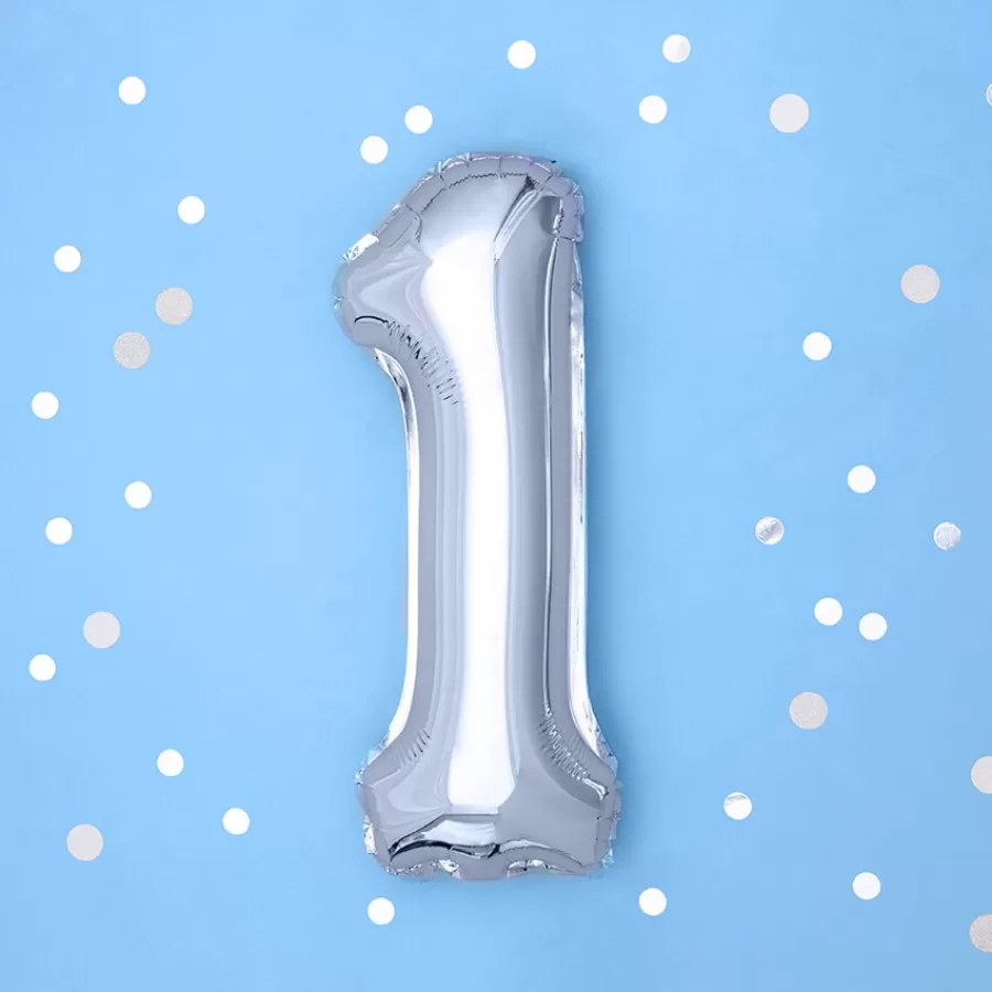 Μπαλόνι foil αριθμός 1 ασημί για τη διακόσμηση του πάρτυ.