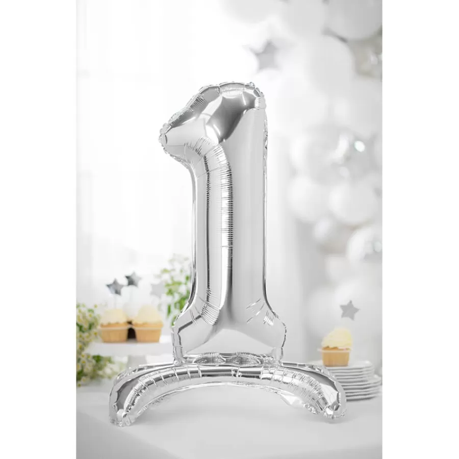 Μπαλόνι foil ασημί αριθμός 1 με βάση για τη διακόσμηση του πάρτυ γενεθλίων ή της επετείου!
