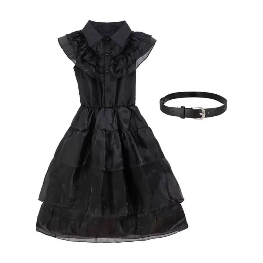 Στολή Wednesday - Μαύρο φόρεμα με ζώνη.