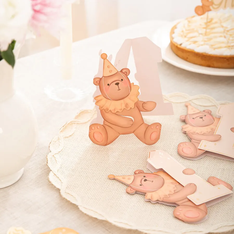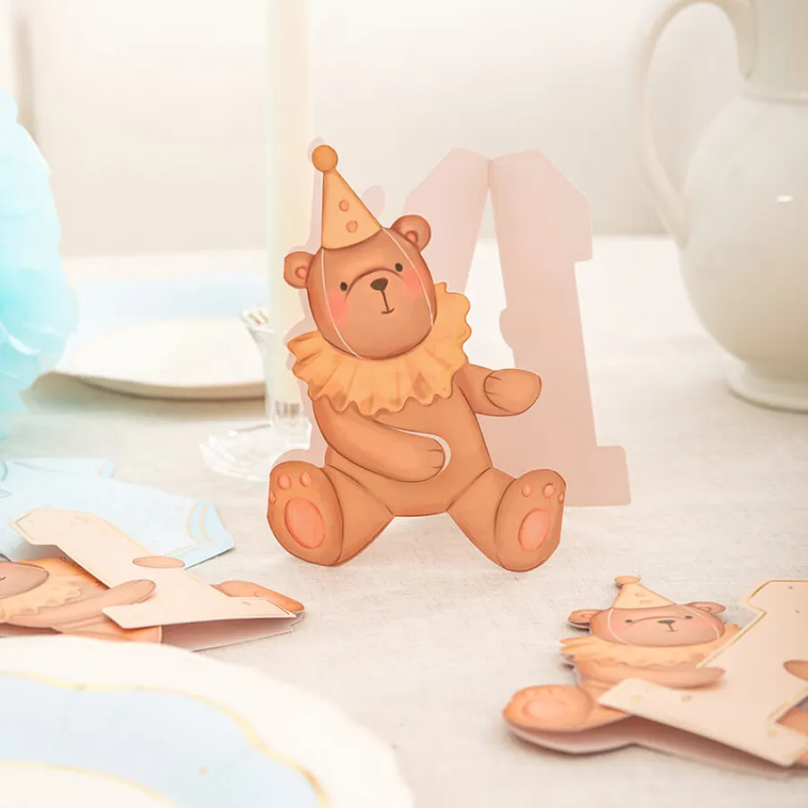 Προσκλήσεις για πάρτυ - Αρκουδάκι με τον Αριθμό 1 - 6τμχ.