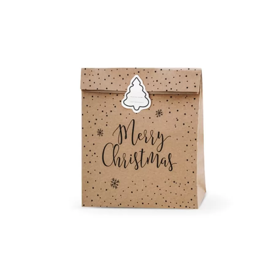 Σακουλάκια kraft Merry Christmas με αυτοκόλλητο - 3τμχ.