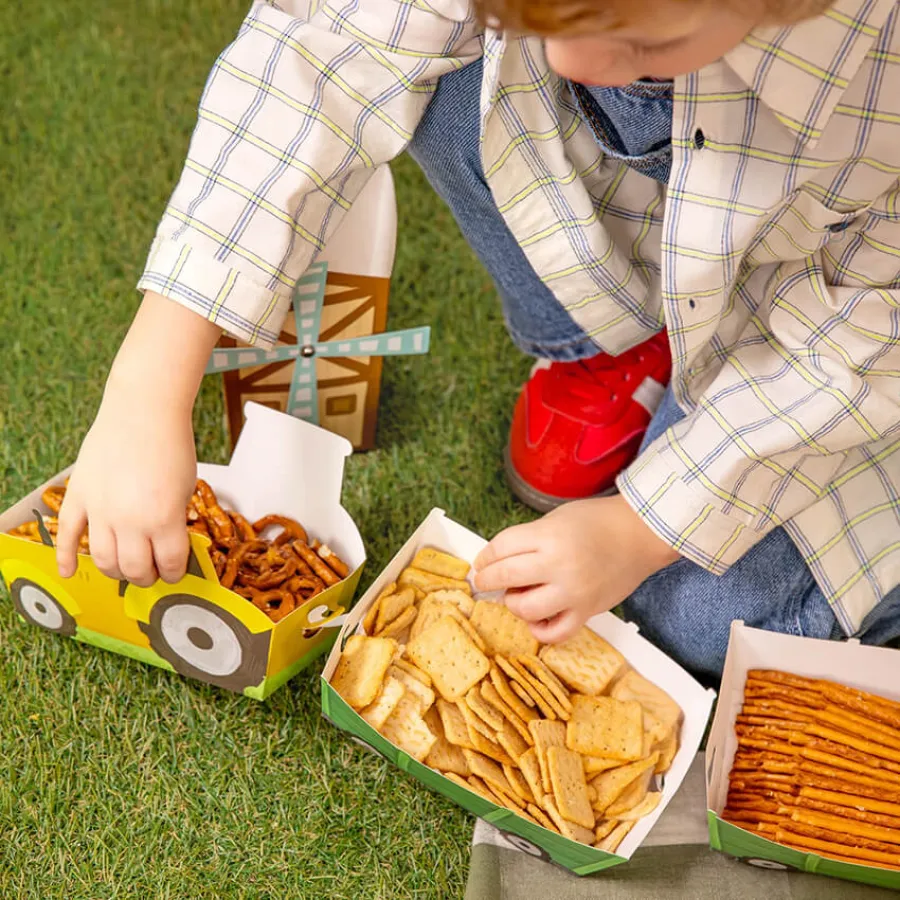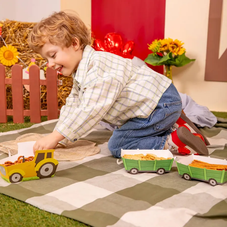 Χάρτινα κουτάκια για κεράσματα με σχέδιο το τρακτέρ & τα τρέιλερ.