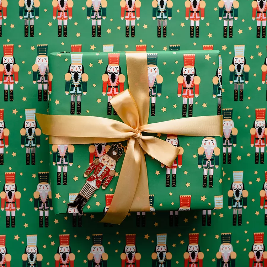 Πράσινο χαρτί περιτυλίγματος με σχέδιο τον Καρυοθραύστη.