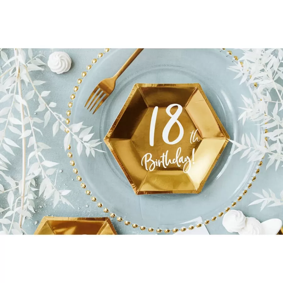 Χάρτινα πιάτα γλυκού "18th Birthday" χρυσά - 6τμχ.