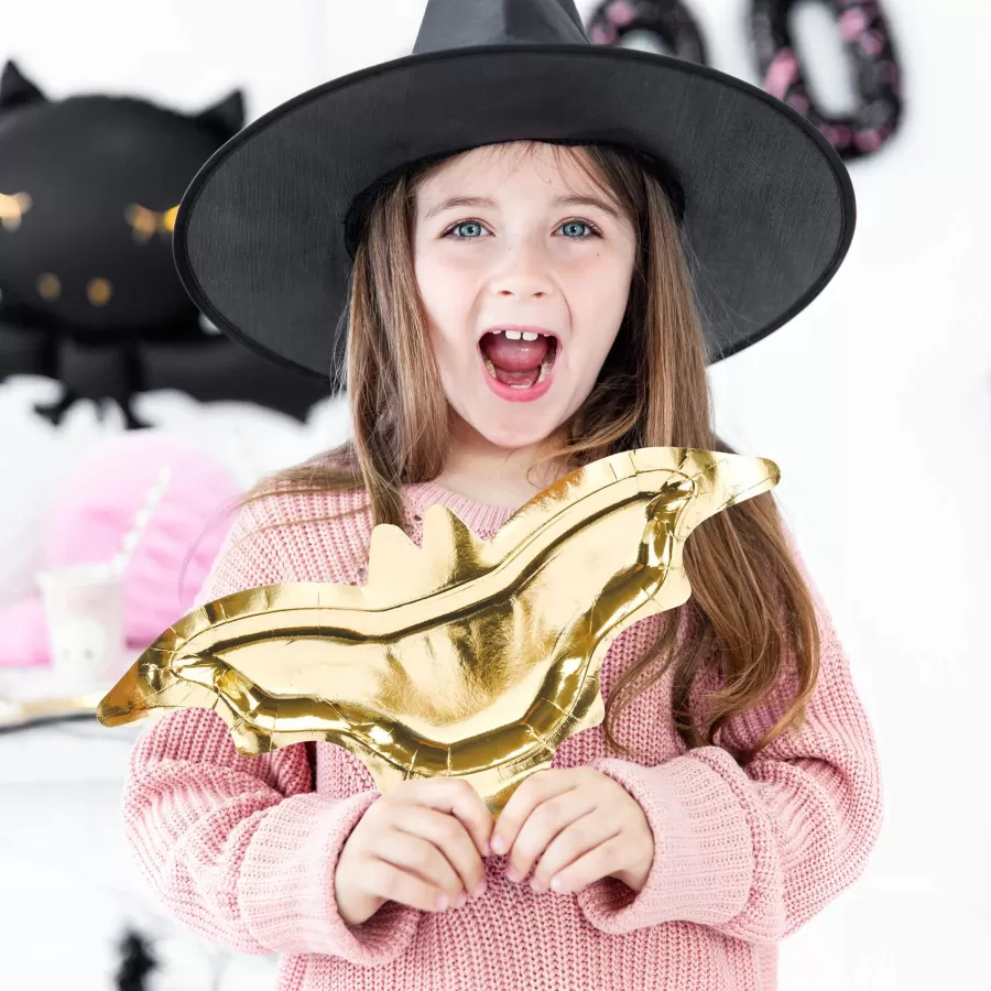 Χάρτινα πιάτα γλυκού χρυσά σε σχήμα νυχτερίδας.