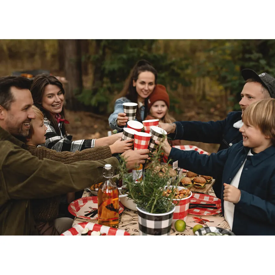 Χάρτινα ποτήρια καρό κόκκινα & μαύρα - BBQ Party - 6τμχ.