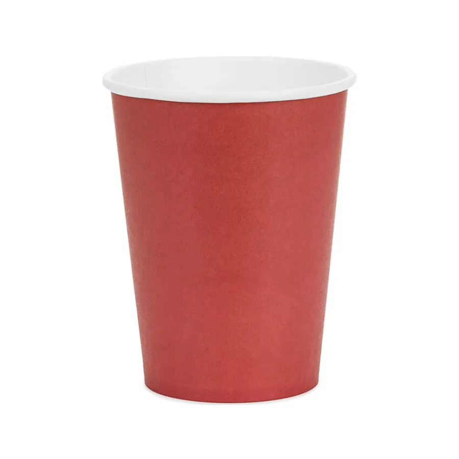Χάρτινα ποτήρια σε σκούρο κόκκινο χρώμα.
