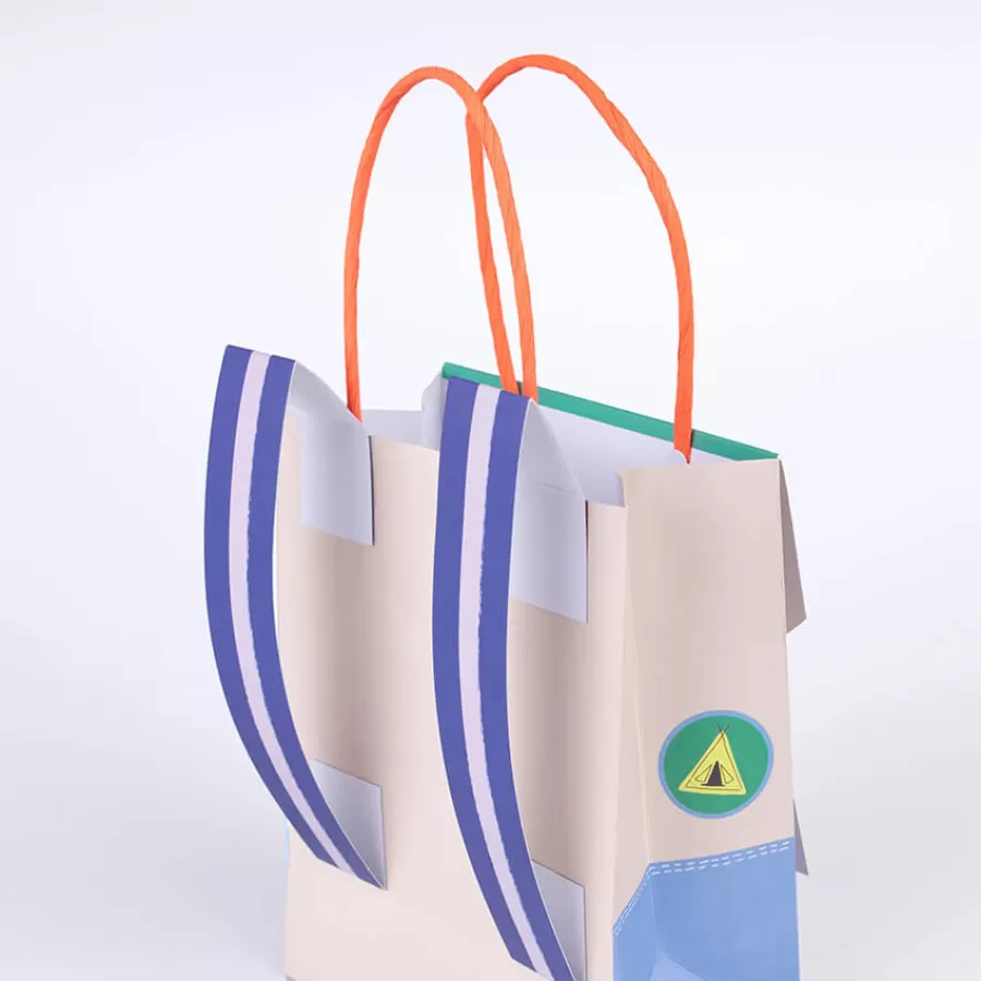 Μικρά χάρτινα σακουλάκια με σχέδιο το σακίδιο κατασκηνωτή.