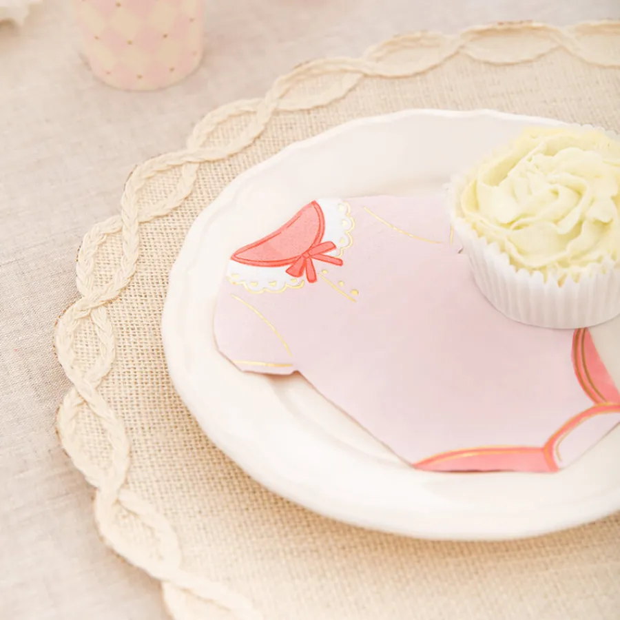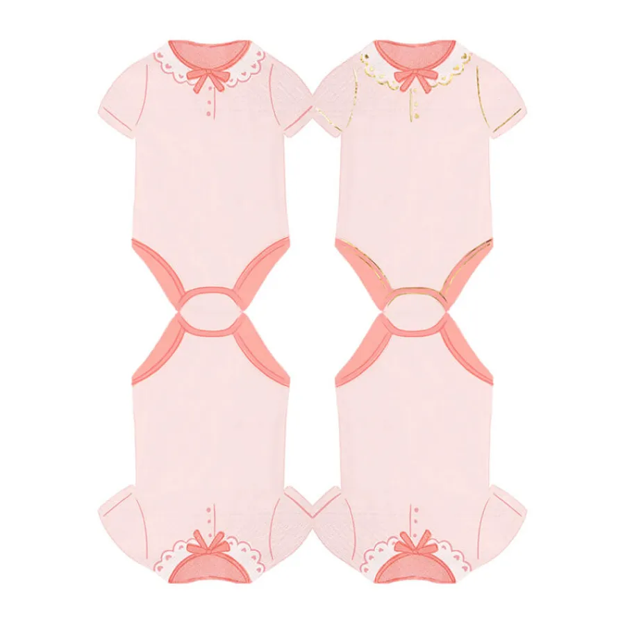3φυλλες ροζ χαρτοπετσέτες σε σχήμα κορμάκι μωρού, με χρυσές λεπτομέρειες.