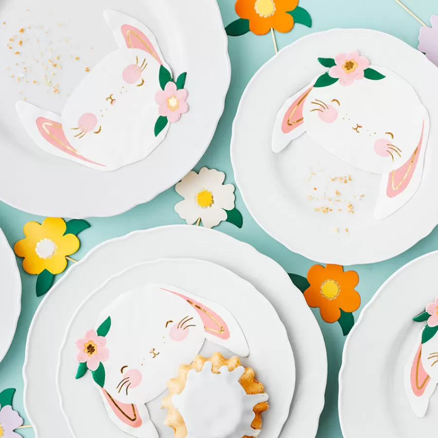 Χαρτοπετσέτες σε σχήμα μουσούδας κουνελιού λευκές με ροζ & χρυσές λεπτομέρειες.